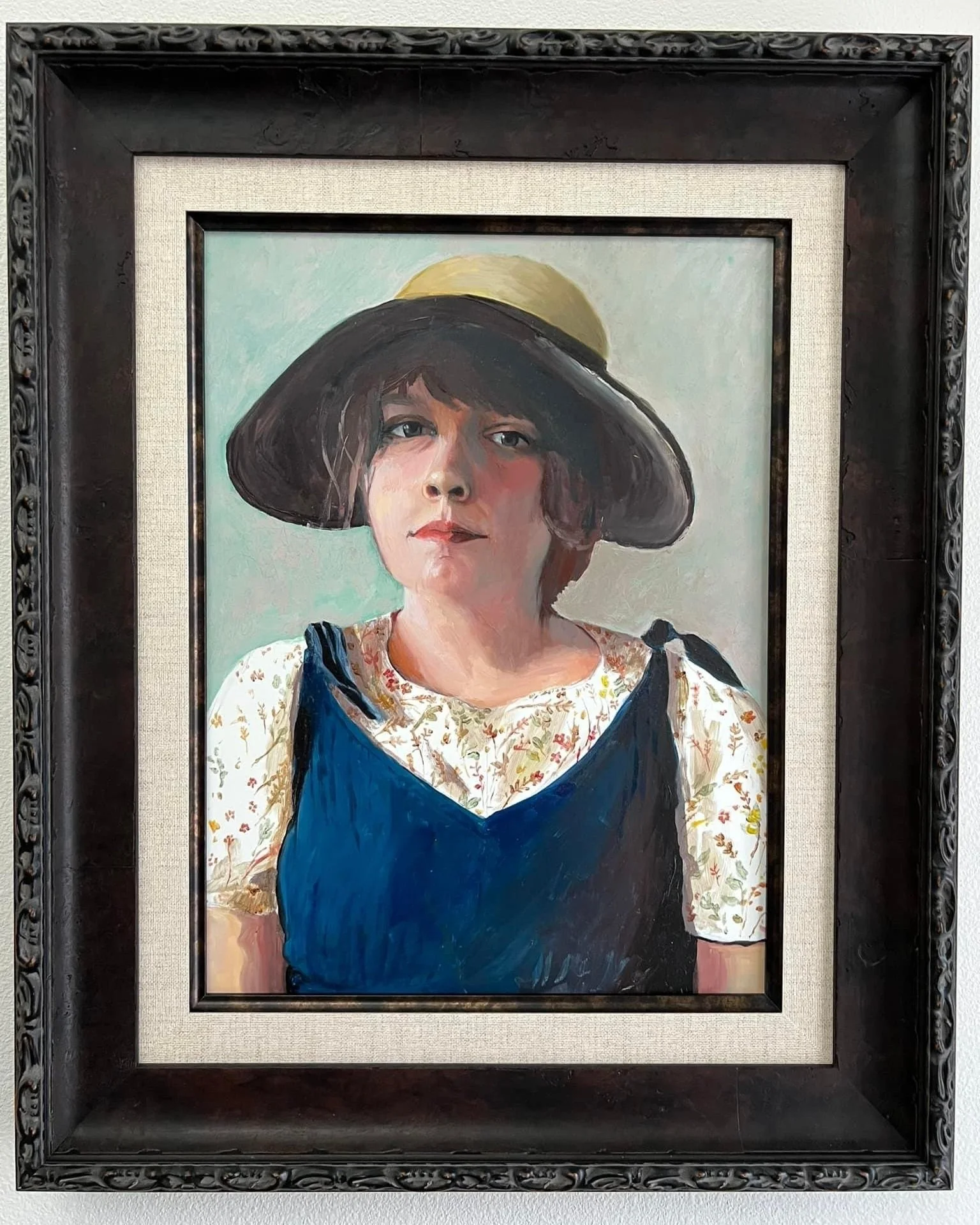 Do I love the fact that I look like a pioneer in this self portrait? No not so much. But It’s probably the best painting of a person I have ever done. I love oil paints. Oil paint is buttery and a joy to mix together. It’s luminescent and looks great forever.