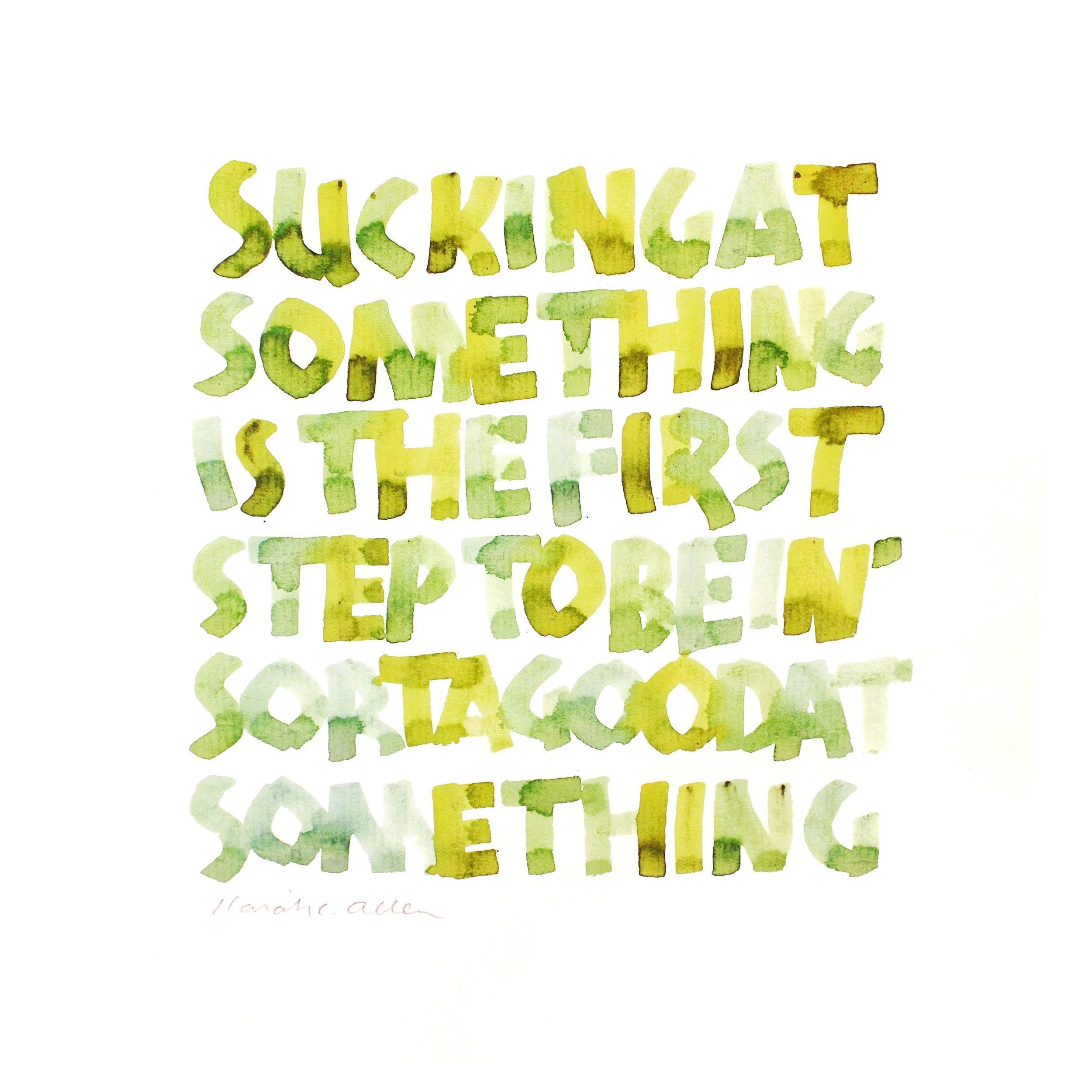 In Stock “Sucking At Something Quote”, 10X10” Prints on Heavy Card Stock, Cotton. 2023 In Stock Vincent’s Room, 2022 In Stock Ouch, Linocut Print, 6X4” on white printing paper $15 In Stock Got Tea?, Linocut Print, 6X4” on white printing paper $11